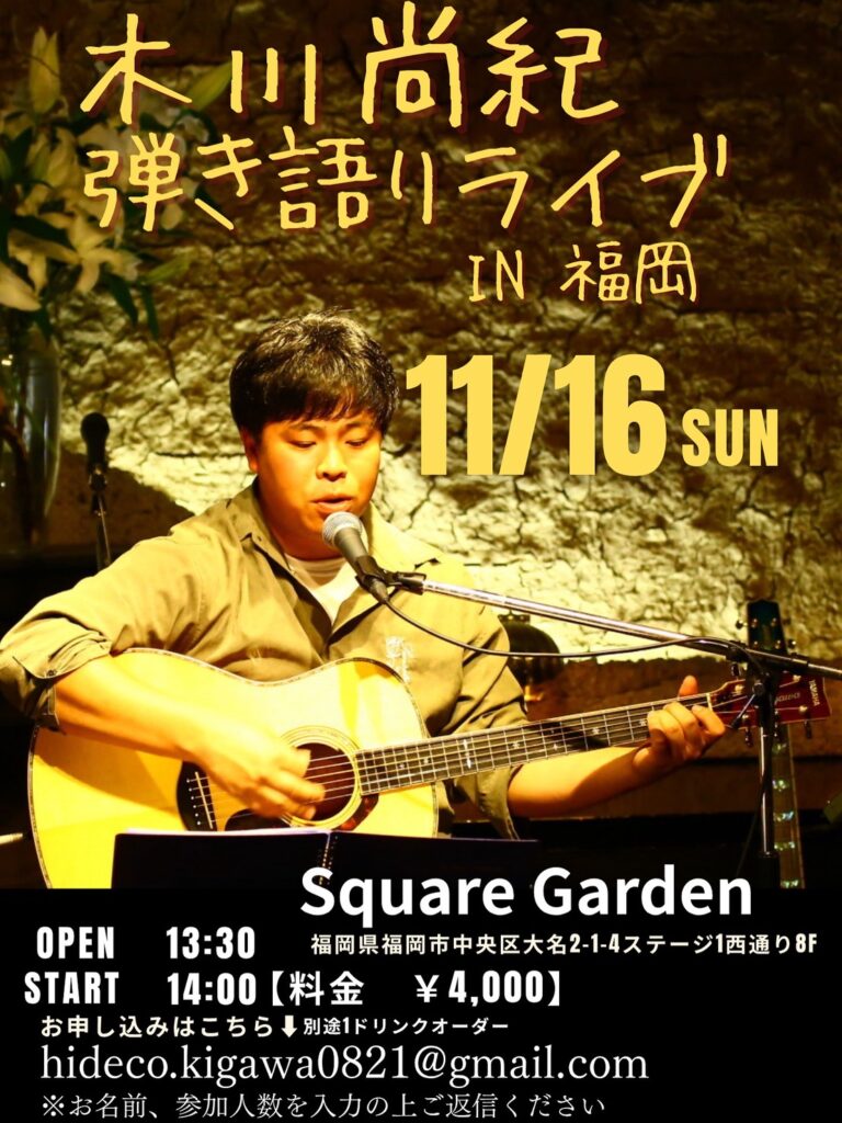 【木川尚樹】2025.11.16(日)木川尚紀弾き語りライブ in福岡